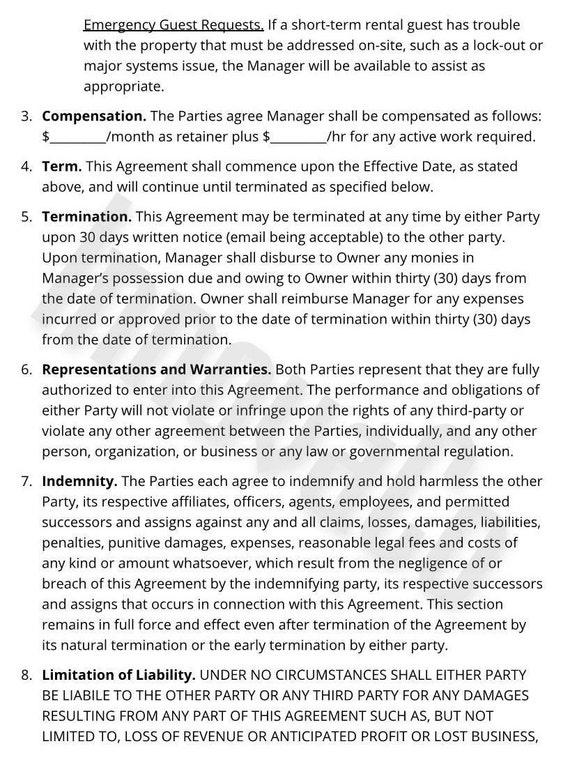 Property Management Agreement Property Management Template Etsy